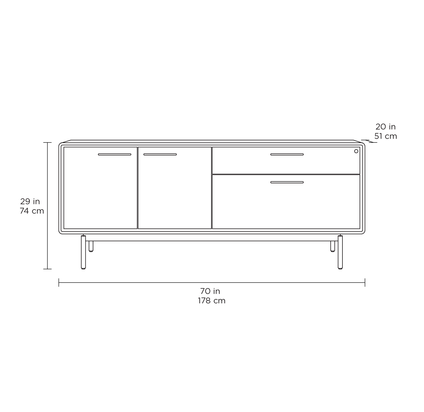 - 74H x 178W x 82D cm