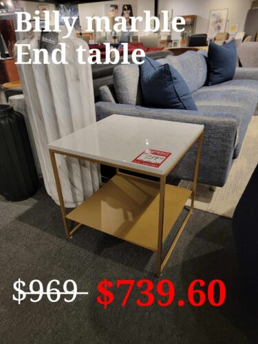 Italian made Cortina white marble top coffee table with a gold metal steel base. A matching end table is currently also available.