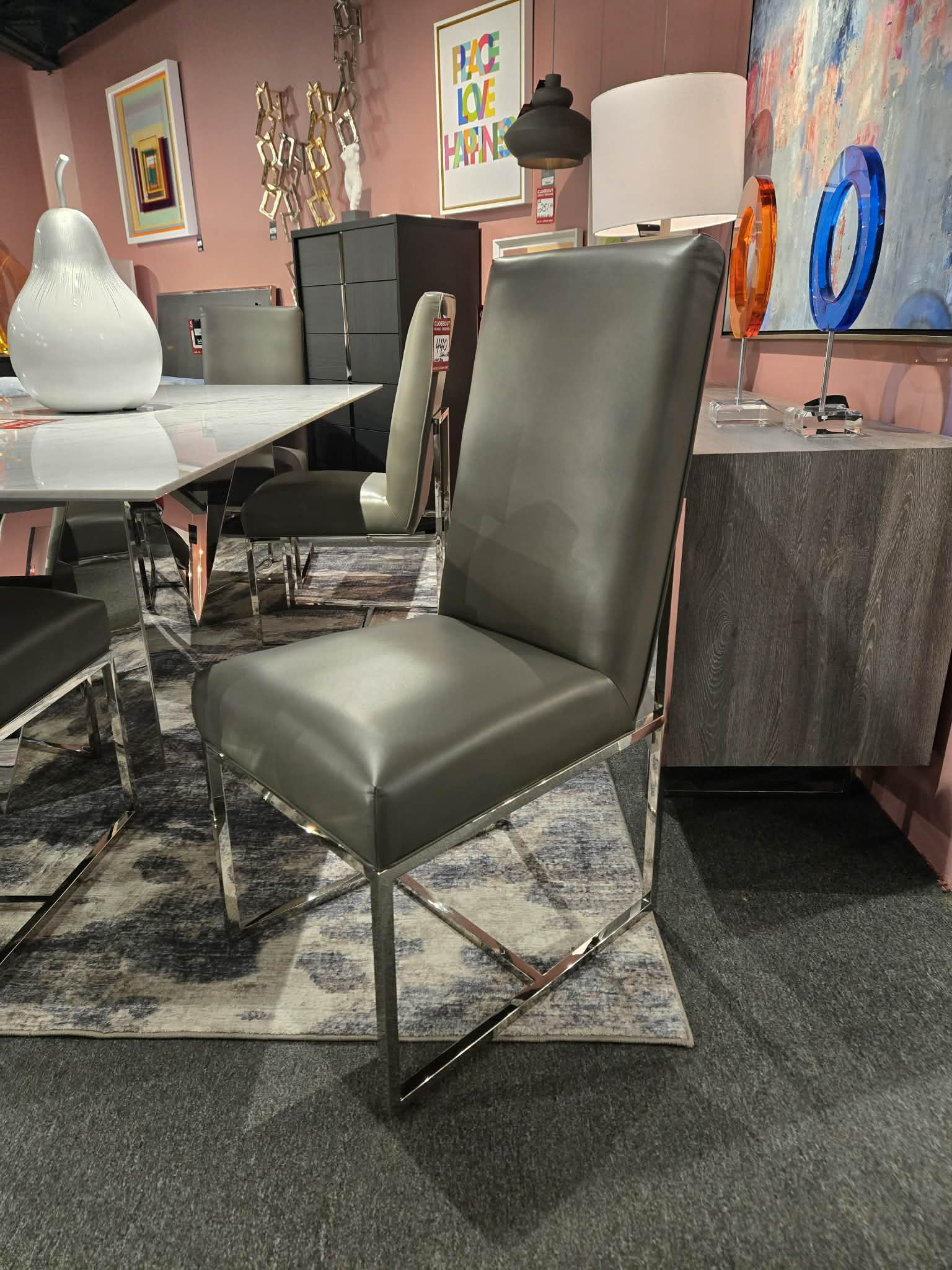Italian made leather dining chair with a chrome base.