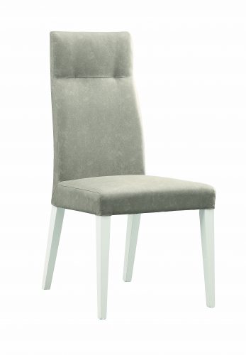 The new Canova dining room set from ALF Italia. This collection stands out for its modern, linear and bright design. The high gloss white and chrome enhance details accented with marble. Chairs made of solid birch construction with the seat and back wrapped in Ecoleather.