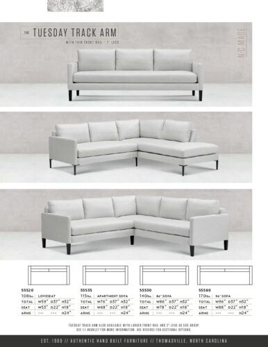 The rolled track arm of the Tuesday sofa suggests that this design isn’t afraid of the traditional, but it doesn’t shy away from comfort either. This makes the Tuesday sofa ideal for a wide range of decor styles. Additionally, the twenty-eight configurable pieces in the group up the ante on adaptability.